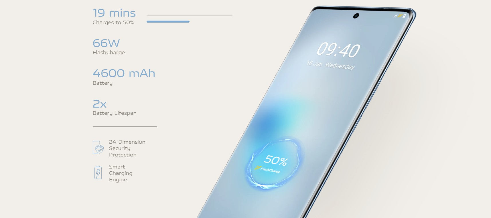 *V27 is equipped with a vivo standard charger which supports a charging power of up to 66W. The actual charging power is dynamically adjusted as the scene changes, and subject to actual use.